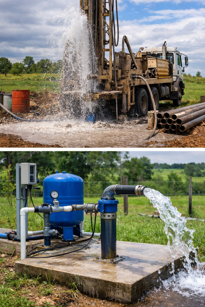 O poço atende diferentes aplicações. Por exemplo, fazendas utilizam o sistema para irrigação e criação de animais. Da mesma forma, indústrias e condomínios recorrem ao poço para garantir abastecimento regular e reduzir custos operacionais.